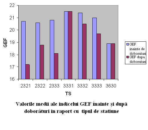→ īn statiunile de molidisuri indicele GEF are valori cu un punct mai mici decāt īn statiunile de amestec;