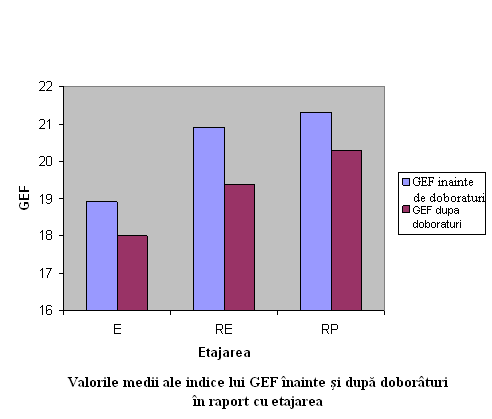 Se observa ca īnainte de doborāturi valoarea indicelui GEF creste de la 19,2 la clasa I de vārsta pāna la 21,5 la clasa a IV-a de vārsta, apoi scade pāna la 20,1 la clasa a VI-a de vārsta, la clasa a VII-a de vārsta indicele GEF avānd o valoare de 21,2.