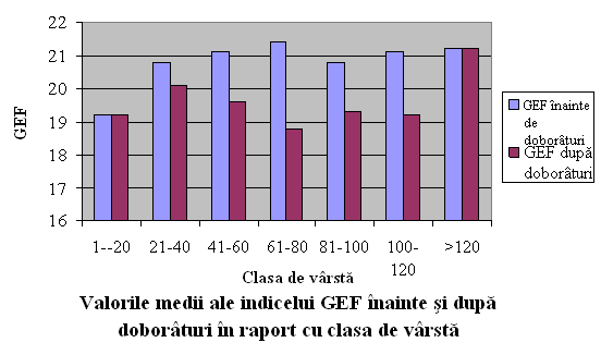 Stratificānd datele rezultate din calculul indicelui GEF īn raport cu clasele de vārsta s-au constatat cāteva aspecte interesante. Rezultatele obtinute īn urma stratificarii au fost prezentate grafic īn figura...