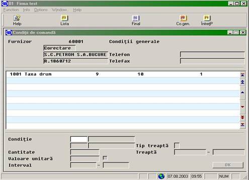În conditii comanda (EK 021) se stabilesc conditile valorice si/sau cantitative specifice furnizorului, cum ar fi discount procentual sau în valoare absoluta, definite pe intervale si trepte (valorice sau cantitative).