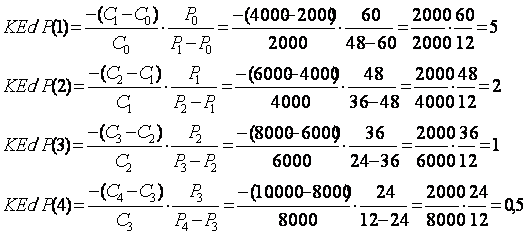 Determinati elasticitatea cererii folosind cea de-a doua metoda de calcul al coeficientului elasticitatii cererii, în functie de modificarea pretului.