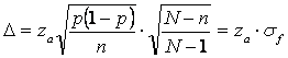 Ţinând seama de relatiile anterioare se obtine precizia cu care se estimeaza probabilitatea p prin frecventa relativa f, în cazul sondajului repetat si nerepetat: