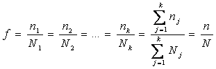 Se caracterizeaza prin faptul ca din fiecare grupa în care a fost împartita populatia generala se extrag atâtea unitati încât raportul dintre numarul lor si volumul grupei din care s-au extras sa fie egal cu raportul dintre volumul general al esantionului si volumul populatiei, adica prin definitie:
