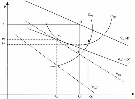 Situatia Q2p2 reprezinta un echilibru pe termen lung pentru o curba de cost dat CMT si Cmg, în timp ce situatia Q1p1 reprezinta un echilibru pe termen scurt.