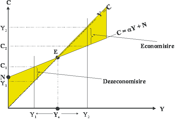 Figura 5. Functia liniara a consumului. Procesele de economisire si dezeconomisire