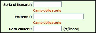 In campul destinat Codului document identitate nu se vor completa decat caracterele numerice, fara initialele judetului unde a fost eliberata Cartea de Identitate.
