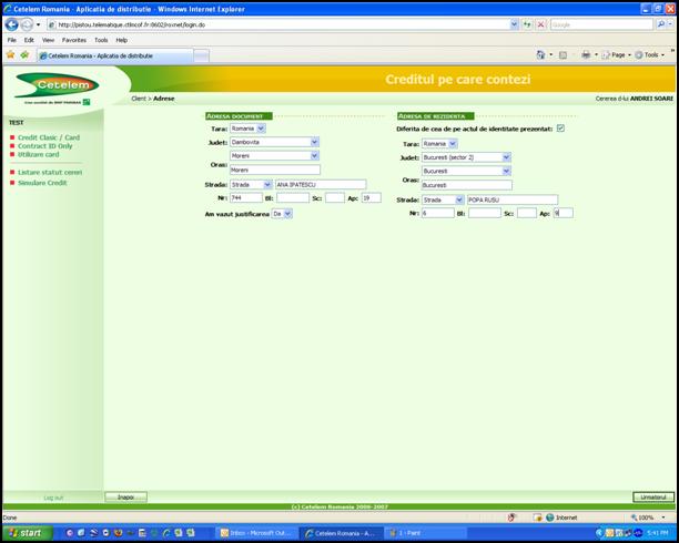 In partea stanga a ecranului se va introduce adresa din BI/CI, iar in partea dreapta a ecranului va fi introdusa adresa de rezidenta ( daca este cazul ). Veti observa, ca dupa introducerea adresei din BI/CI exista un camp destinat vizualizarii actului de identitate. Obligatoriu, aceasta casuta va fi "bifata" dupa introducerea si validarea adresei din actul de identitate.