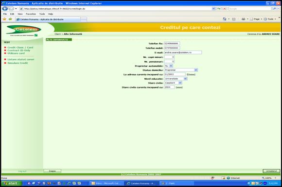 Dupa ecranul unde este necesara completarea datelor de adresa si domiciliu, se va completa ecranul destinat altor informatii: In acest ecran se vor completa datele complementare, date care fac referire la telefon, la starea civila, numarul de copii, etc.