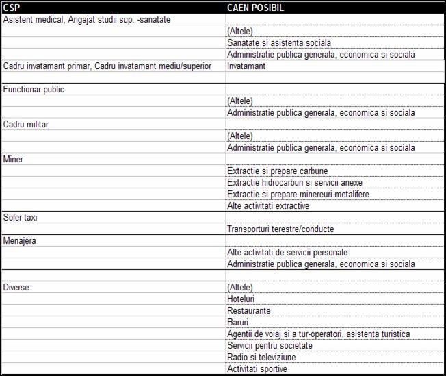societatilor este grupat pentru o mai rapida alegere. Pentru a vedea lista completa a CAEN-urilor