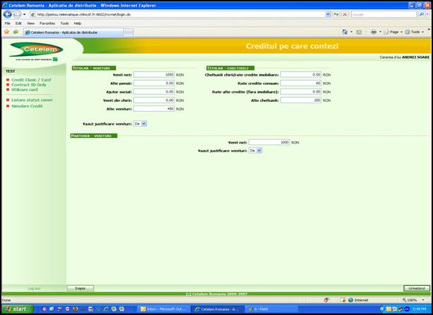 O data completat si ecranul prezentat mai sus, aplicatia va afisa un sumar al cererii de credit introduse. In