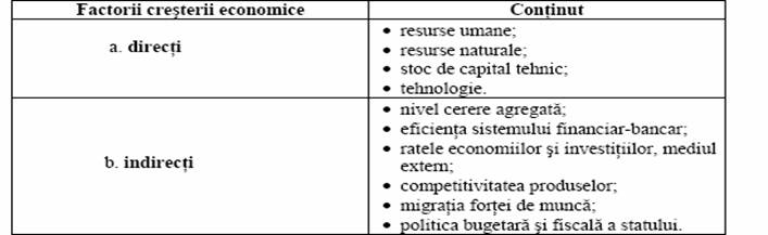 Cresterea economica este rezultatul activitatii conjugate a unui sir de factori, nu numai economici, ci si tehnici, stiintifici, organizatorici, politici, culturali.