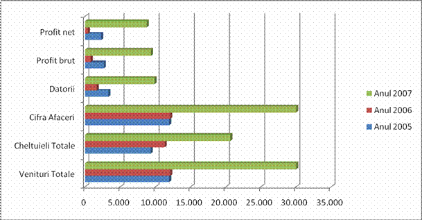 Cifra de afaceri a avut o evolutie ascendenta in perioada analizata,astfel in anul 2007 fata de cel din 2006 a crescut de 2,48 ori, in anul 2007 fata de 2005 a crescut de 2,51 ori, in anul 2006 fata de cel din 2005 a crescut cu doar 1 procent.