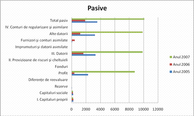 Datoriile au avut o evolutie oscilanta in perioada analizata,astfel in anul 2007 fata de cel din 2006 a crescut de 5,99 ori, in anul 2007 fata de 2005 a crescut de 2,98 ori, in anul 2006 fata de cel din 2005 a scazut cu 50%.