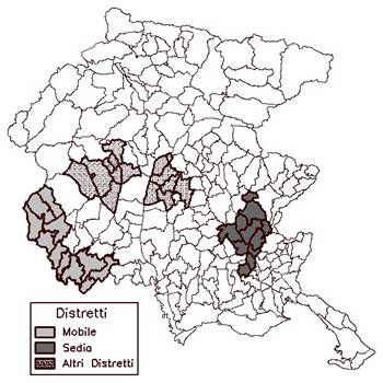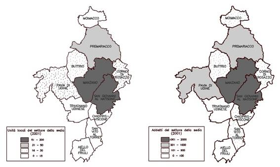 Inainte de a incheia aceasta parte generala, in esenta, cu caracter normativ, dedicat raioanele in Italia si in Friuli-Venezia Giulia, este util a se face o scurta comparatie intre cele doua districte in cauza. De aceea am inclus Tabelele 1 si 2, care reflecta caracteristicile demografice si economice ale districtului scaunului si mobilierului. Arata clar diferente semnificative intre cele doua zone examinate : districtul mobilierului este mult mai vast ca si teritoriu si populatia dar si un nr mai mic de unitatil locale, si deci, dimensiunea medie a fermei este mai mare decat UL, in fine prezenta mai mare specializare a productiei, cel al scaunului este diferit, din punct de vedere a unei specializari bine elevate, cat si a unei densitati importante a intreprinderilor