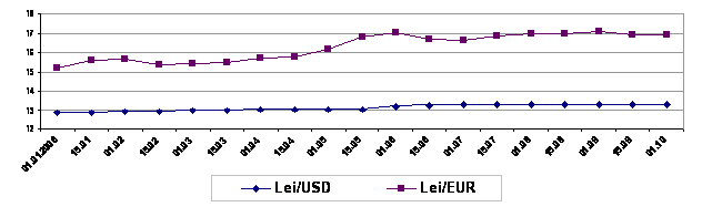 Leul moldovenesc s-a depreciat fata de dolar si Euro. Cursul de schimb al monedei nationale pe parcursul primelor 9 luni a marcat o depreciere fata de dolarul SUA de 3,6% si fata de Euro - de 11,2% in termeni nominali.