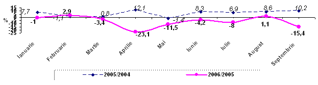 Ianuarie-septembrie fata de perioada similara a anului precedent |