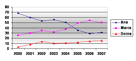 Clientii actuali cei mai importanti sunt:"Ana" -un lant de gradinite,"Maria"- o casa de copii si "Doina"- un supermarket. Graficul atasat demonstreaza procentual cererea celor trei mari clienti ai firmei.