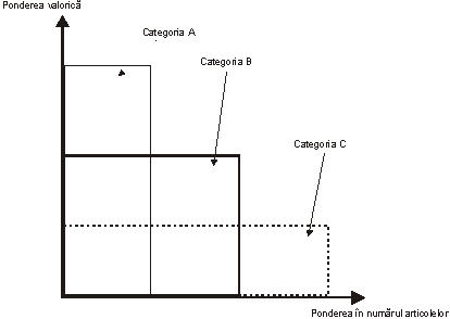 Se bazeaza pe faptul ca unele categorii de stocuri au un numar mare de articole dar o pondere mica în totalul stocurilor necesare, în timp ce alte categorii de stocuri se afla în situatia inversa. În acest sens, activitatea de gestionare se concentreaza asupra stocurilor cu valoare mare. Din punct de vedere practic, se realizeaza o grupare a stocurilor pe trei categorii: categoria A: stocuri de valoare mare dar cu pondere mica în totalul articolelor aprovizionate; categoria B: stocuri de valoare medie si cu o pondere medie în totalul articolelor; categoria C: stocuri cu valoare mica dar cu pondere mare în totalul articolelor: