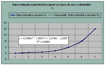 În practica se estimeaza ca rata estimata a pierderii în functie de clasa de risc a clientului poate fi reprezentata astfel: