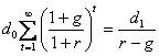 Presupunând ca dividendele vor creste anual cu acesta rata de crestere constanta si ca dividendul curent este d0, dividendele din urmatorii ani se vor prezenta astfel: