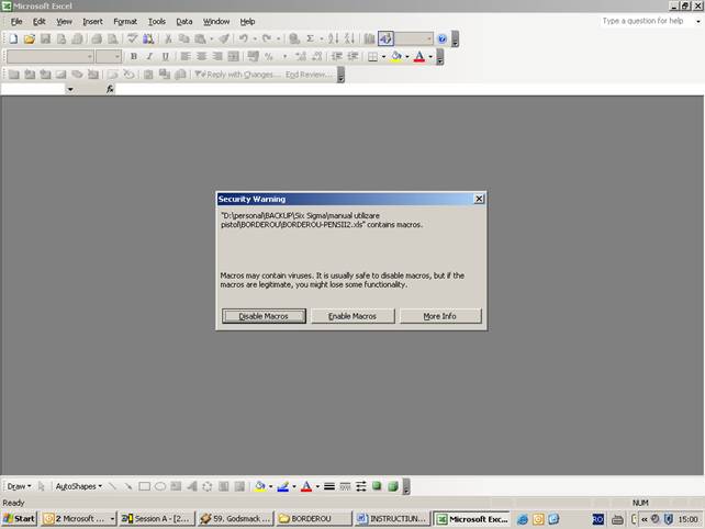 Este foarte important sa selectati optiunea "Enable Macros", in caz contrar borderoul nu va functiona corect.