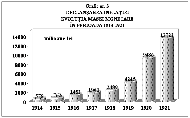 inflatia (Grafic nr. 3): pentru prima oara in istoria economica a lumii emisiunea de moneda fiduciara fara acoperire cauzata de nevoile financiare ale razboiului si ale refacerii postbelice a determinat cresteri ale preturilor foarte mari comparativ cu evolutia anterioara primului razboi mondial;