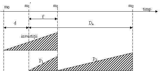Investitia si profiturile actualizate, în momentul m1', sunt date de relatiile: