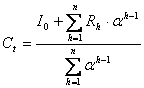 Se observa ca în relatie se însumeaza venitul net actualizat pe întreaga durata de viata economica a utilajului (T), la care se adauga valoarea ramasa a utilajului. Actualizarea se face la momentul de achizitie a utilajului.