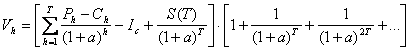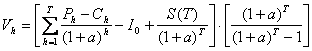 În cazul unui singur utilaj venitul net actualizat Vh în anul h, h'1,...,T este dat de relatia: