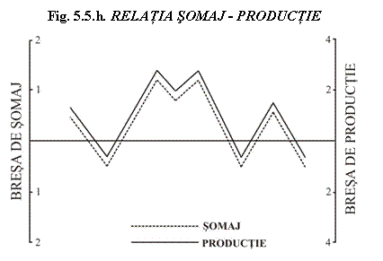 Potrivit acestei legi o modificare cu doua procente a PNB real fata de cel potential provoaca o schimbare de un procent īn rata somajului. De pilda, daca PNB real scade fata de cel potential (100%) cu doua procente, adica la 98%, atunci rata somajului va creste cu 1% (de exemplu, de la 6% la 7%). Bresa de somaj, care arata ca devierea ratei somajului real de la rata somajului natural īn procente, se gaseste īntr-un raport de 1 la 2 fata de golul de productie. Figura 5.5.h. īnfatiseaza grafic acest aspect.