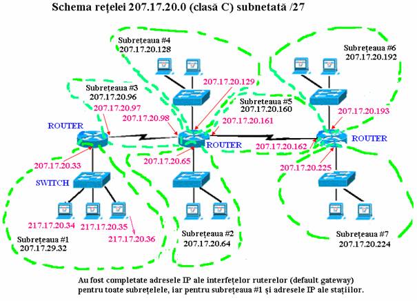 alocarea adreselor IP pentru gazde, prin substituirea numerelor 1, 2, 3, . . .