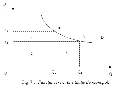 Fig. 7.1 arata ca monopolul poate vinde mai multe unitati, dar numai daca micsoreaza pretul de-a lungul curbei cererii.