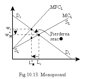 In concluzie, MFC > w si cand monopsonul decide angajarea unui nou lucrator va compara beneficiul suplimentar pe care-l obtine de pe urma acestuia cu MFC.