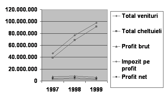 Se observa ca veniturile din exploatare au crescut în 1998 fata de 1997 cu 66%, iar în 1999 fata de 1997 cu 111%.