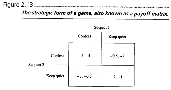 Strategiile disponibile suspectilor poate fi prezentata într-o matrice a câstigurilor ca si aceea din Figura 2.13.