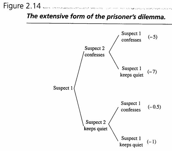 Exista o alta cale de a privi optiunile Suspectului 1. Matricea câstigurilor este uneori numita ca forma strategica a jocului. O alternativa este forma extinsa. Aceasta pune optiunile unui jucator sub forma unui arbore al deciziei, care este aratata în Figura 2.14.