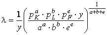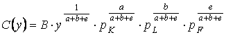 Consumurile de resurse K, L, F din relatiile (3.6) care îndeplinesc proprietatea (3.7), conduc la functia de productie de forma: