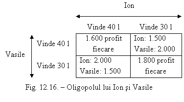 Bineinteles, Petru poate face si el acelasi rationament. Daca amandoi produc cate 40 l, productia totala va fi 80 l si pretul scade la 40 u.m./l. Profitul scade si el la 8600.