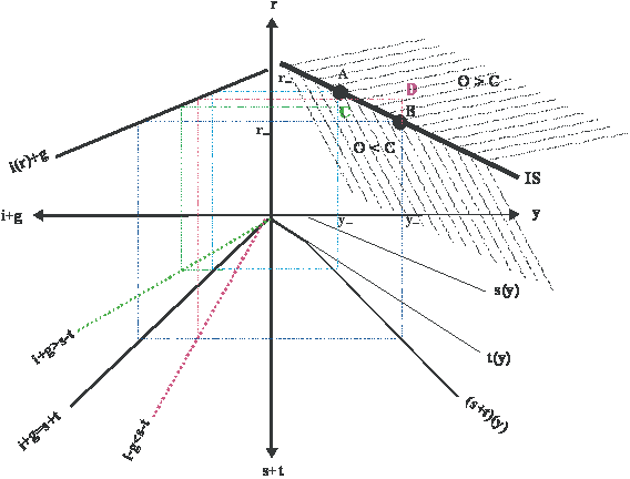 Termenul liber al curbei IS (A) depinde de trei factori: cererea autonoma (C), multiplicatorul investitiei autonome (m) si rata impozitarii directe (d), astfel: