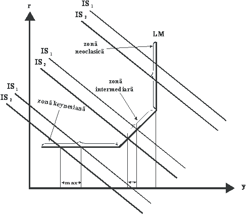 Figura 30. Politica monetara are eficienta maxima (variatia venitului este maxima) pe zona neoclasica a curbei ofertei agregate