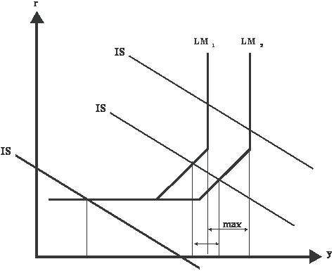 Figura 29. Politica fiscala are eficienta maxima (variatia venitului este maxima) pe zona keynesiana a curbei ofertei agregate