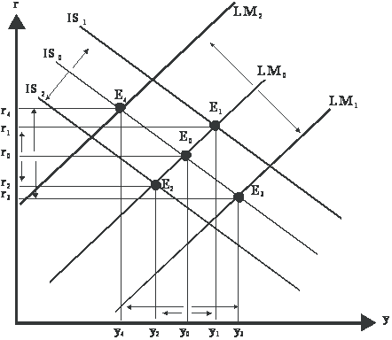 - deci, se va obtine un venit de echilibru macroeconomic intern (ye) si o rata a dobânzii de echilibru (re)