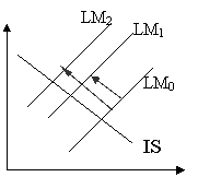 In cazul aplicarii unei politici monetare restrictive curba LM ar trebui sa se deplaseze de la LM0 (nivelul initial) pana la LM2, insa arieratele compenseaza reducerea masei monetare, curba LM inregistrand o evolutie doar pana la nivelul LM1.