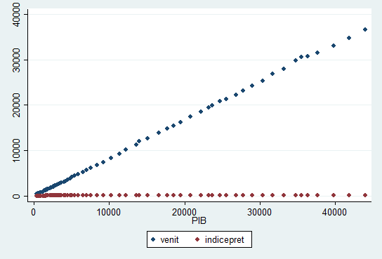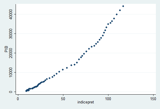 Norul de puncte care analizeaza legatura dintre PIB si nivelul veniturilor este prezentat in graficul urmator: