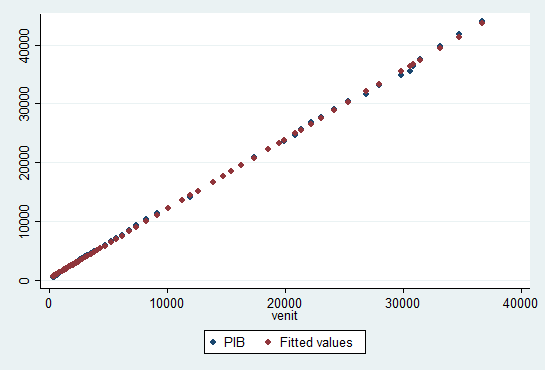 PIB = 56.47501 + 1.1576378 * venit + 1.1576378 * indicepret