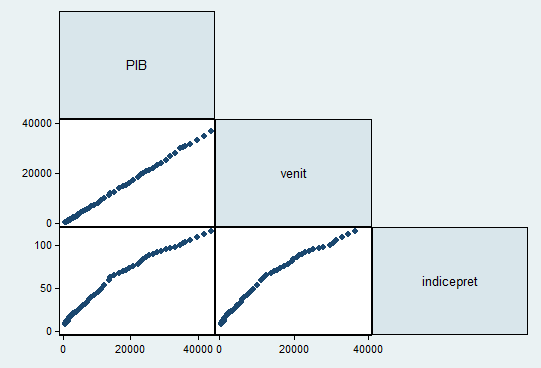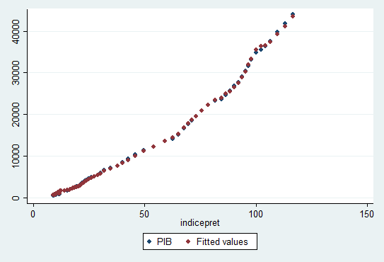 Inca o data se demonstreaza corelarea dintre PIB si indicele preturilor. Aceasta corelatie este foarte mare 0.9870, deci factorul considerat poate explica in mare masura variatia variabilei dependente.