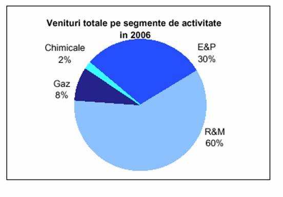 Veniturile din E&P s-au ridicat la 7.370 mil lei, reprezentând 30% din cifra de afaceri, Rafinarea si Marketingul contribuind cu 14.525 mil lei, adica 60%. Restul de 10% provin de la divizia de Gaze si de la Doljchim.