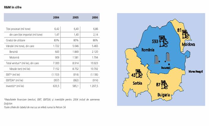 EBIT-ul generat de activitatile din rafinare si marketing a ramas negativ sub actiunea combinata a marjelor reduse din rafinare si marketing, compensate partial de cresterea vânzarilor si de înregistrarea elementelor speciale. În timpul anului au fost închise benzinarii si depozite neprofitabile si deprecierea aferenta a fost înregistrata, fiind observata o reducere a costurilor datorita centralizarii activitatii de marketing.