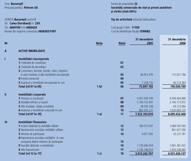 Activele fixe au înregistrat o crestere de 23% în comparatie cu cifra anului 2005, în principal datorita achizitiei de active corporale si necorporale. Investitiile în alte companii au contribuit de asemenea la cresterea activelor fixe, datorita: OMV Bulgaria, OMV România, OMV Iugoslavia, SC MP Petroleum Distributie si grupului de companii Ring Oil, companii de servicii pentru rafinarii (Rafiserv Arpechim, Rafiserv Petrobrazi) si datorita cresterii creditelor acordate subsidiarelor.