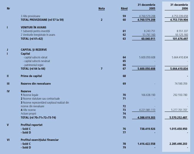 In 2006, toate ratele de profitabilitate s-au mentinut la un nivel ridicat, compania înregistrând un profit net îmbunatatit. Profitul net a crescut semnificativ (+60%). Ratele de lichiditate au scazut în comparatie cu 2005, având în vedere ca valoarea activelor circulante este mai mica în 2006 datorita scaderii pozitiei de numerar ca urmare a investitiilor în active financiare în cursul anului, prezentate în cadrul activelor fixe.